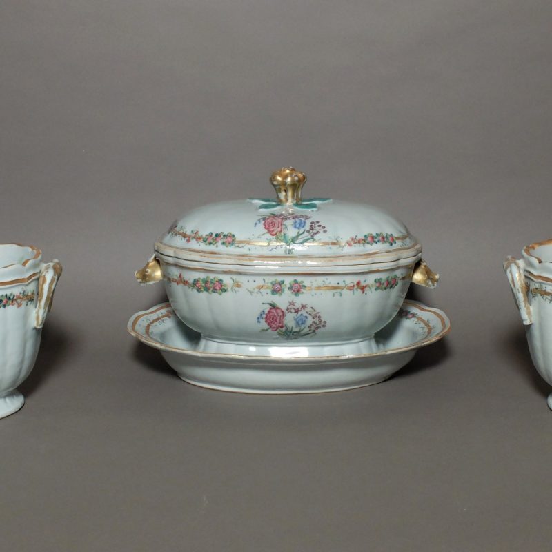 Grande terrine et sa paire de rafraichissoirs à bouteilles