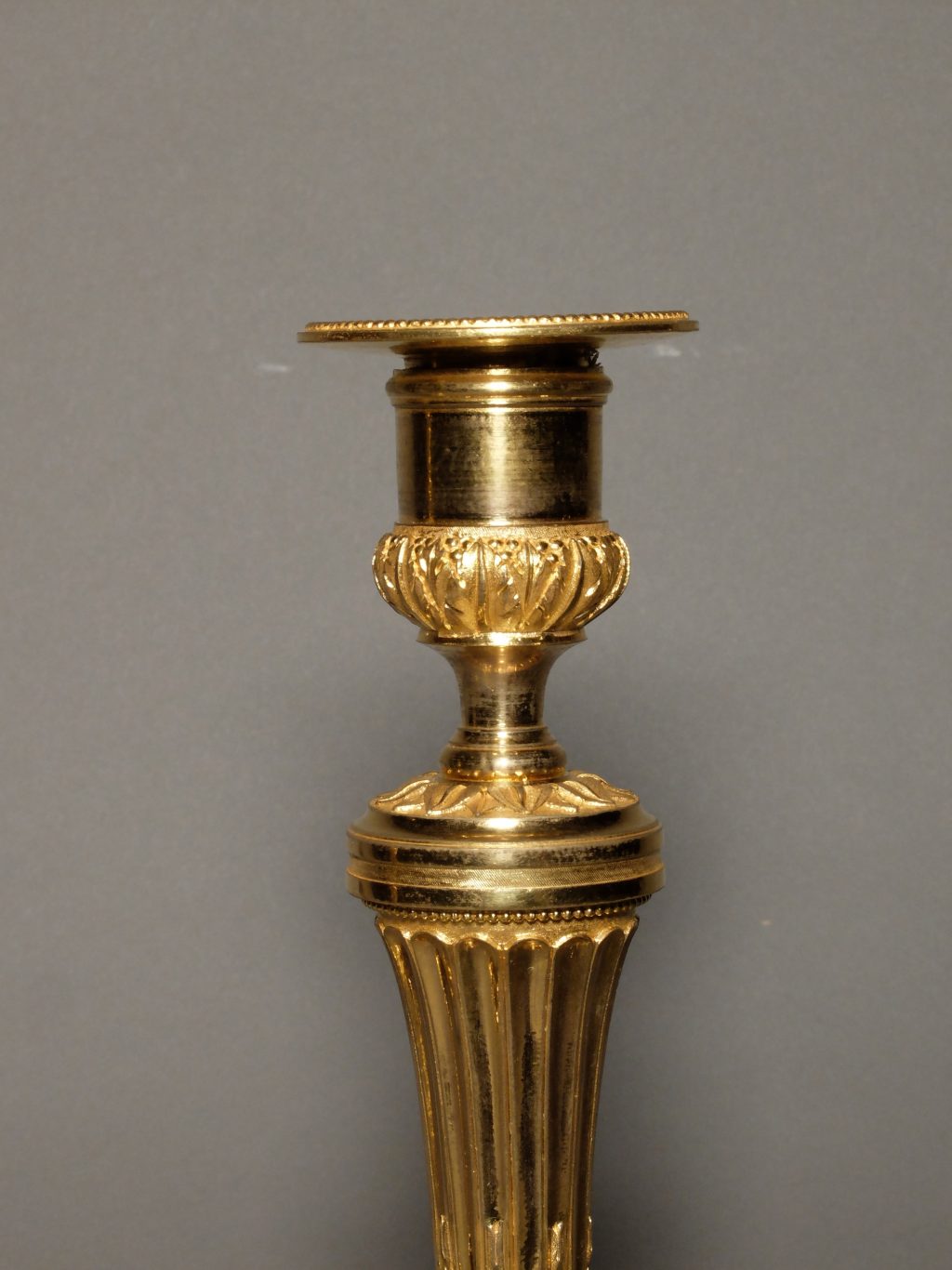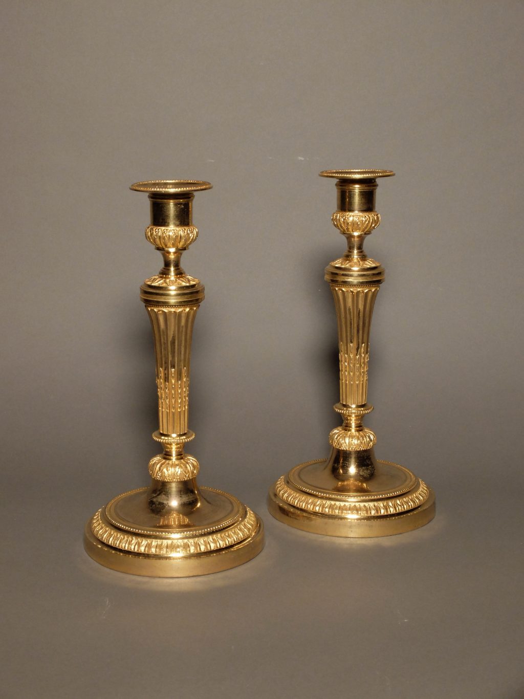 Paire de bougeoirs Louis XVI en bronze finement ciselé et doré au mercure.