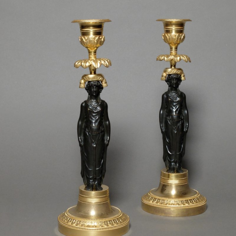 Paire de bougeoirs aux cariatides d’époque Consulat.