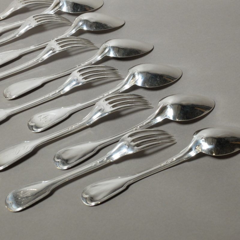 Suite de 12 couverts en argent massif, modèle filet, poinçon au 1er coq (1798-1809)